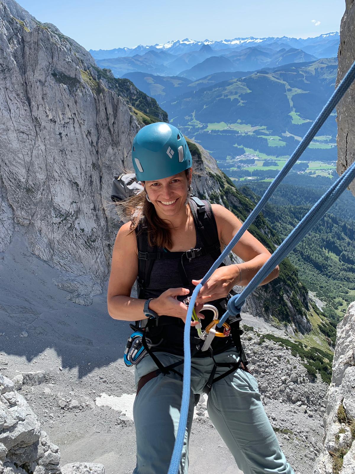 Das Foto ist letzten Herbst am Wilden Kaiser entstanden. Ich durfte da an der Kletteraktion der MMG teilnehmen und habe dort total witzige, lehrreiche und schöne Wochenenden auf beeindruckenden Klettertouren verbracht. Ich habe tolle Menschen kennenlernen dürfen und die Erinnerung daran macht mich einfach immer glücklich!