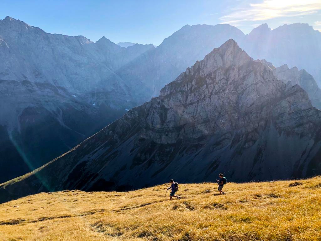 Das ist ein Bild von einer Tour im Karwendel an einem der letzten schönen Herbsttage im vergangenen Jahr. Wir waren mit ein paar Bergmädels auf dem Gamsjoch. Auf dem Abstieg hielt Celine die besondere Lichtstimmung fest: